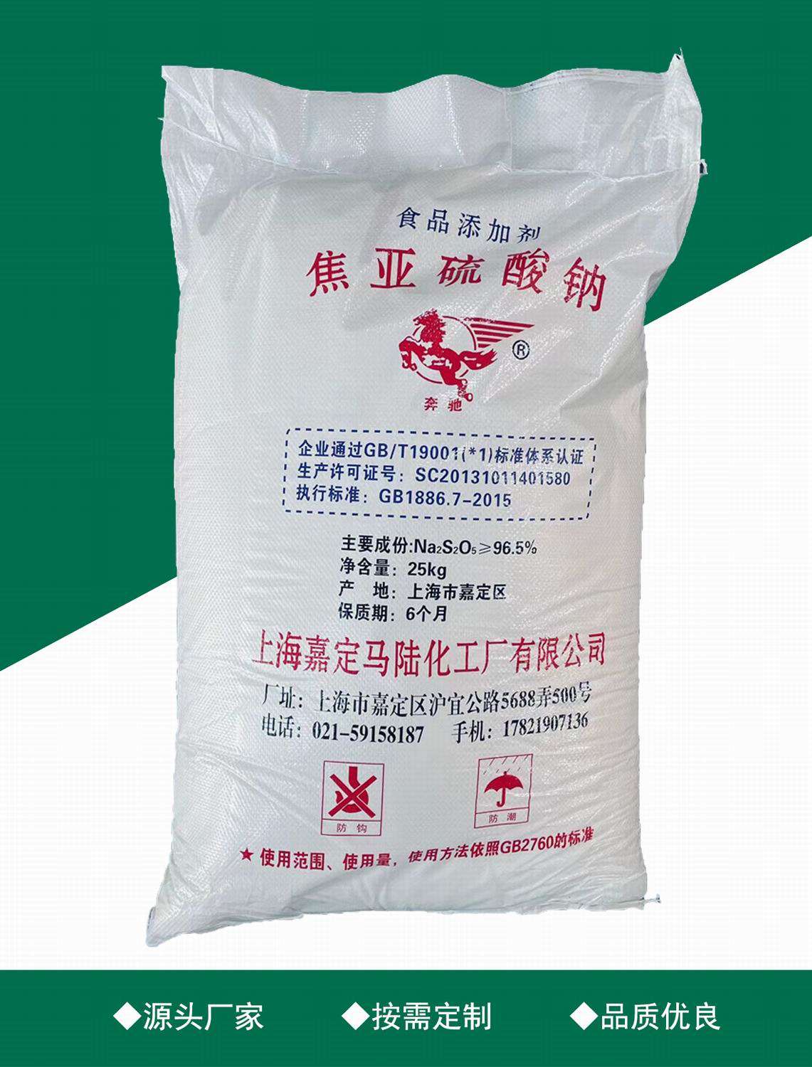 上海嘉定馬陸化工廠有限公司主營生產(chǎn),焦亞硫酸鈉、亞硫酸氫鈉等產(chǎn)品生產(chǎn),幾十年的專注焦亞硫酸鈉研發(fā)生產(chǎn),公司擁有完整、科學(xué)的質(zhì)量管理體系,為確保公司產(chǎn)品能夠長期立足于市場,增強(qiáng)客戶的粘性,可滿足客戶的非標(biāo)定制需求,可提供產(chǎn)品各個用途的解決方案,公司重信譽(yù)、守合同、保質(zhì)量、快速發(fā)貨以,我們擁有專業(yè)的售前售中、售后團(tuán)隊共同協(xié)作,確保用戶采購中的每個環(huán)節(jié)都能有滿意的體驗度。